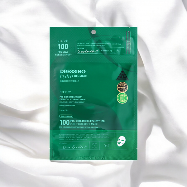 Двухфазная гидрогелевая маска с центеллой VT Cosmetics Pro Cica Reedle Shot 100 2Step Hydrogel Mask успокаивает раздражённую кожу, снимает красноту и чувство жжения. Способствует заживлению воспалений, снижает чувствительность кожи и сокращает выраженность сосудистой сетки. Содержит запатентованный комплекс CicaReedle™ на основе микроигл, способствующий глубокому проникновению и усвоению активов. Продукт состоит из двух этапов: бустер-сыворотки Reedle Shot с высокой концентрацией микроигл и гидрогелевой маски. Основные действующие компоненты: