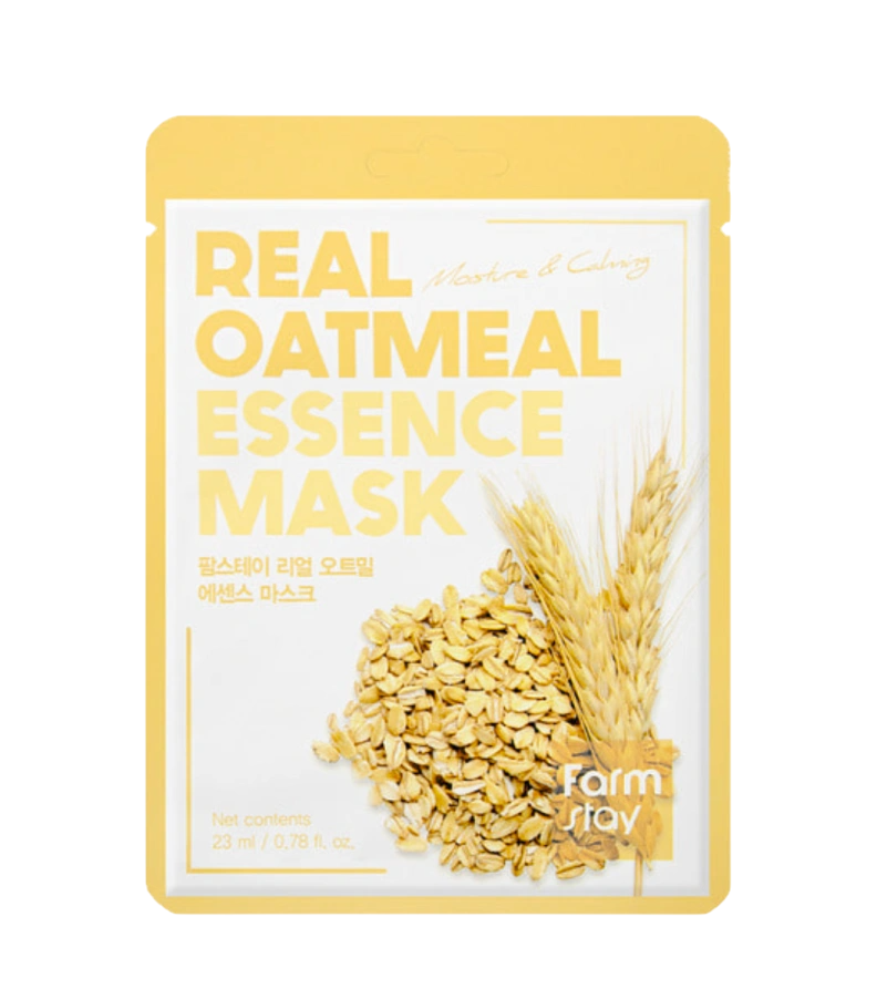 Успокаивающая тканевая маска FarmStay Real Oatmeal Essence Mask на основе овса оказывает общее оздоравливающее действие на кожу, она замедляет размножение бактерий, устраняет зуд, покраснения и раздражение, заживляет, обладает антиоксидантным и увлажняющим эффектом. Маска восстанавливает поврежденную кожу, успокаивает капризную и чувствительную, питает и увлажняет.