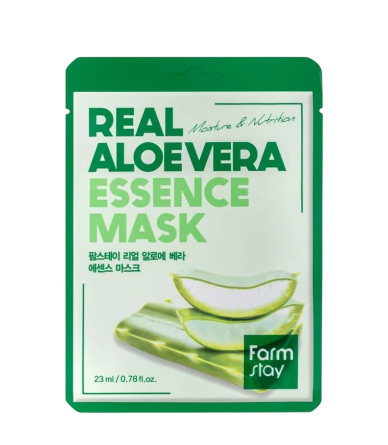 Успокаивающая тканевая маска с алоэ FarmStay Real Aloe Vera Essence Mask помогает избавиться от сухости, покраснений и других проявлений повышенной чувствительности. Средство смягчает кожу, насыщает влагой и успокаивает. Активные компоненты маски позволят быстро восстановить кожу после долгого пребывания на солнце, воздействия внешних негативных факторов, таких как ветер или перепад температур или активных косметических процедур.