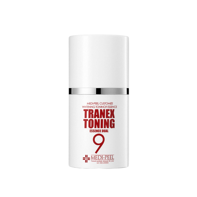 Тонизирующая эссенция с транексамовой кислотой Medi-Peel Tranex Toning 9 Essence Dual глубоко увлажняет, выравнивает тон, осветляет покраснения и постакне и улучшает цвет лица. Средство успокаивает раздражения, разглаживает микрорельеф, делает кожу более гладкой и упругой. Эссенция оказывает мягкое отбеливающее действие, борется с нежелательной пигментацией и застойными пятнами, делает тон лица более равномерным. Устраняет тусклость, уменьшает видимость купероза, возвращает коже здоровый, отдохнувший вид и естественное сияние. Устраняет стянутость и обезвоженность, укрепляет волокна эпидермиса и восстанавливает кожу. Эссенция обладает нежной текстурой молочка, моментально смягчает и напитывает кожу влагой. Средство представлено в удобном формате с дозатором. Основные действующие ингредиенты: