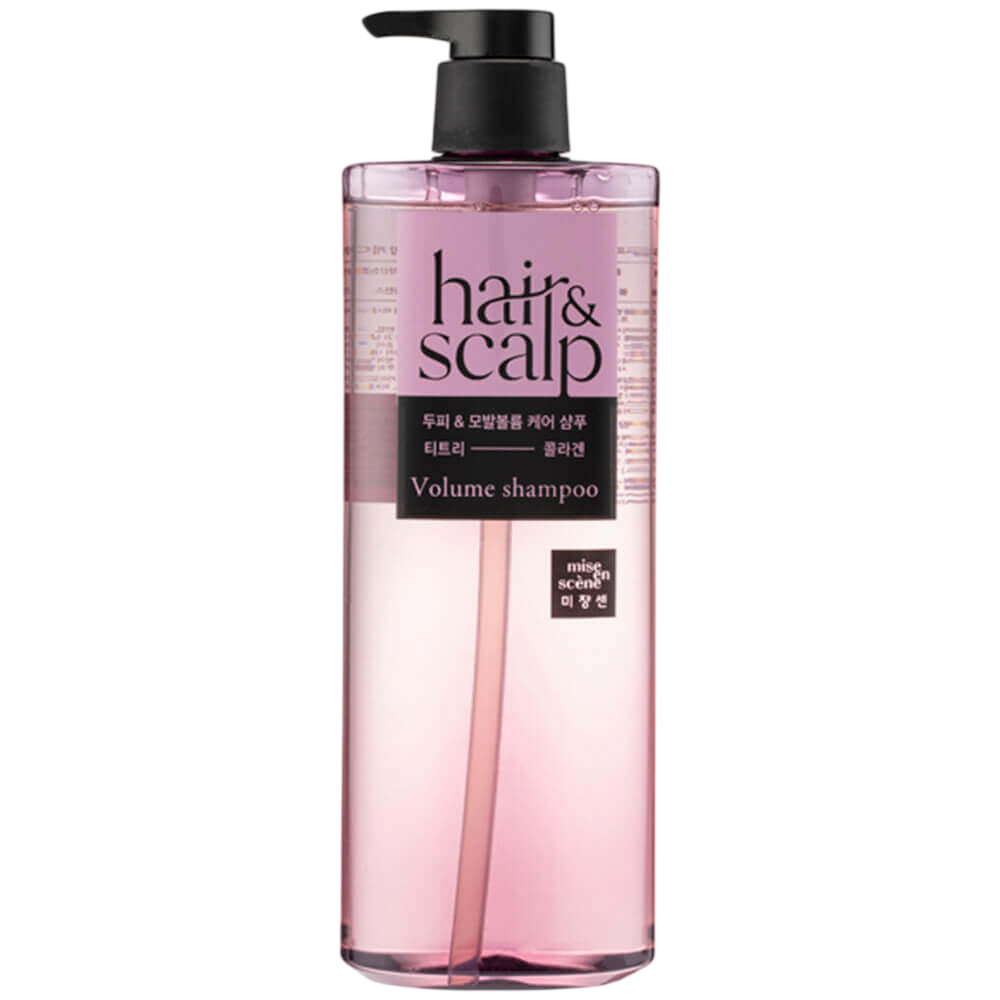 Шампунь Mise En Scene Hair&Scalp Volume Shampoo увлажняет и питает волосы, удаляет все загрязнения с кожи головы, придаёт объём у корней. Деликатно очищает даже чувствительную кожу головы, не провоцирует раздражения и сухости после мытья. Имеет слабокислотную формулу с pH 5.0, поддерживает кислотно-щелочной баланс. Не содержит сульфатов. Средство уплотняет тонкие и ослабленные волосы, дарит блеск и эластичность, восстанавливает повреждения и препятствует сечению кончиков, делает волосы здоровыми и блестящими. Имеет приятный аромат: верхние ноты — перечная мята, дикая мята, плоды эвкалипта; ноты сердца — фрезия, ландыш, жасмин и цветок клевера; базовые ноты — белое дерево, мускус. Основные действующие компоненты: