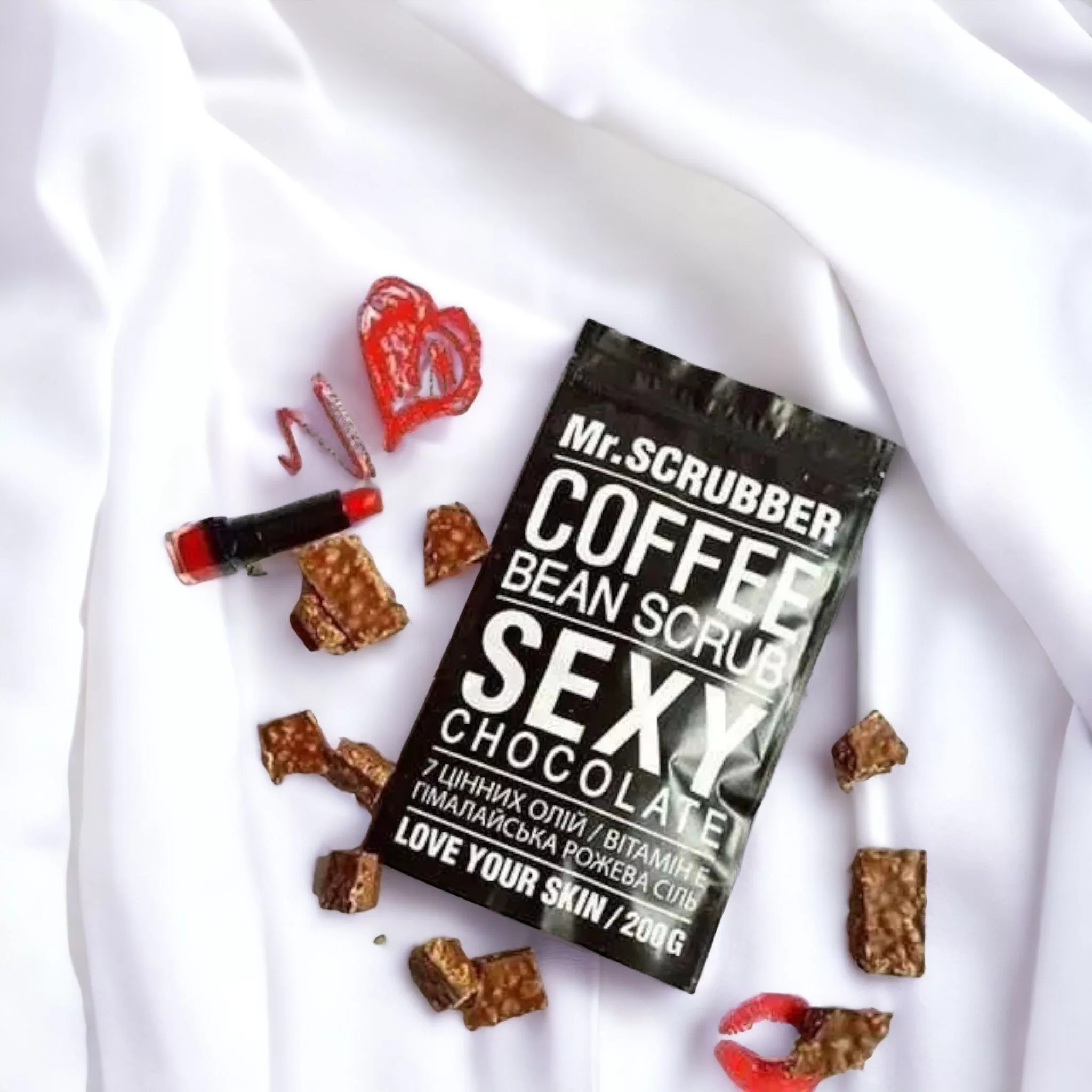 Mr.Scrubber Sexy Chocolate – кофейный скраб с шоколадом для лица и тела. Обеспечивает мягкое отшелушивание и увлажнение кожи, придает ей свежесть и ароматный вид. Подходит для всех типов кожи. Способ применения: Наносить на влажную кожу, массировать круговыми движениями, затем смыть водой. Состав: Кофе, глицерин, шоколад, вода, масла.