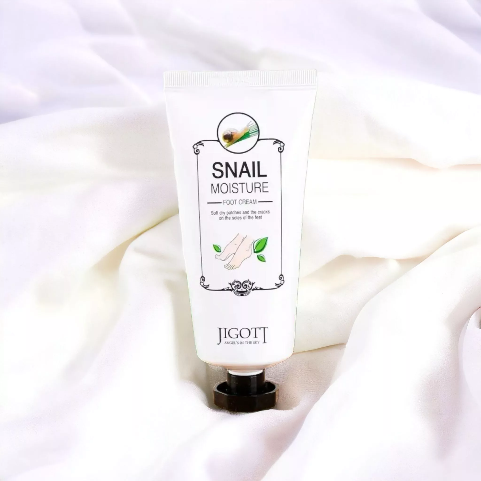 JIGOTT Snail Moisture Foot Cream – увлажняющий крем для ног с экстрактом улитки. Обеспечивает интенсивное увлажнение, смягчение и питание кожи ног. Подходит для всех типов кожи.